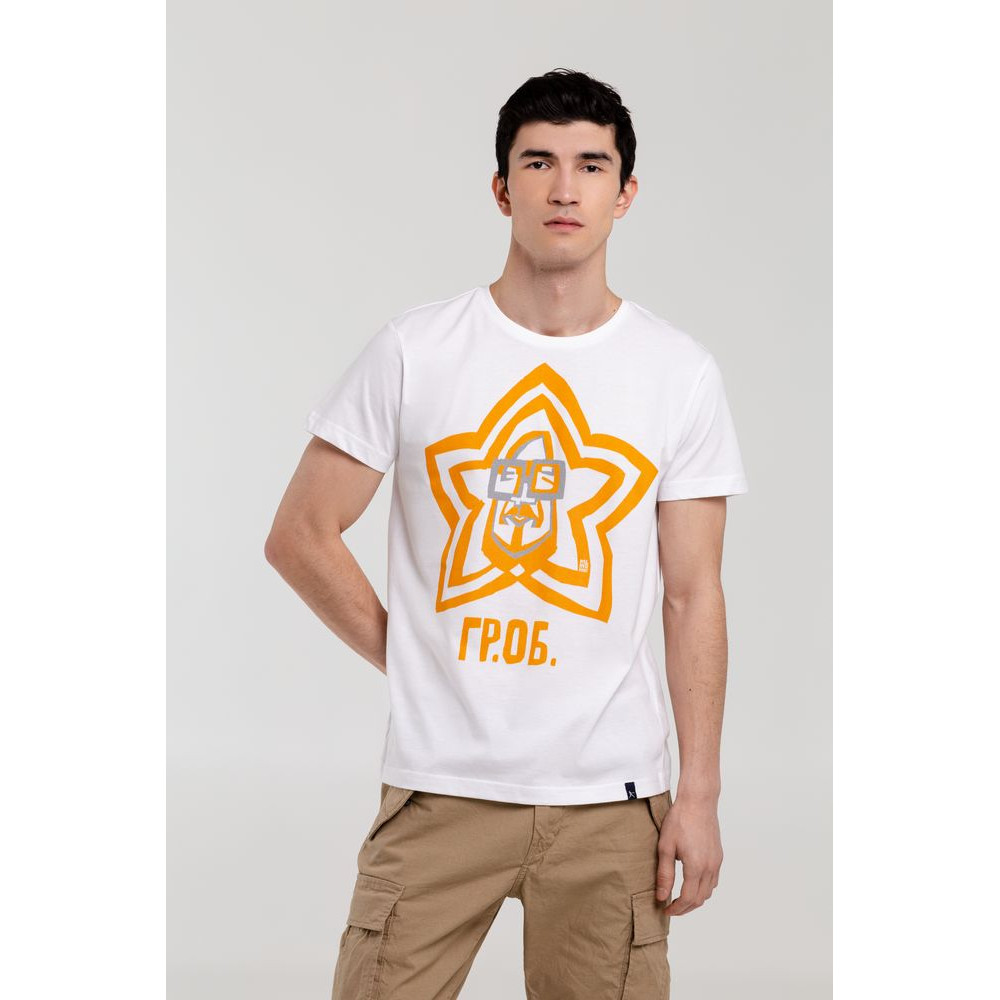 Мужская футболка с круглым вырезом. Двухслойная резинка предохраняет воротник от деформации после стирки.