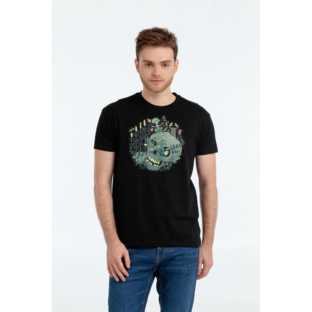 Дизайн футболки «Серенада» представляет собой своеобразную русскую готику в остроумном переосмыслении художника.