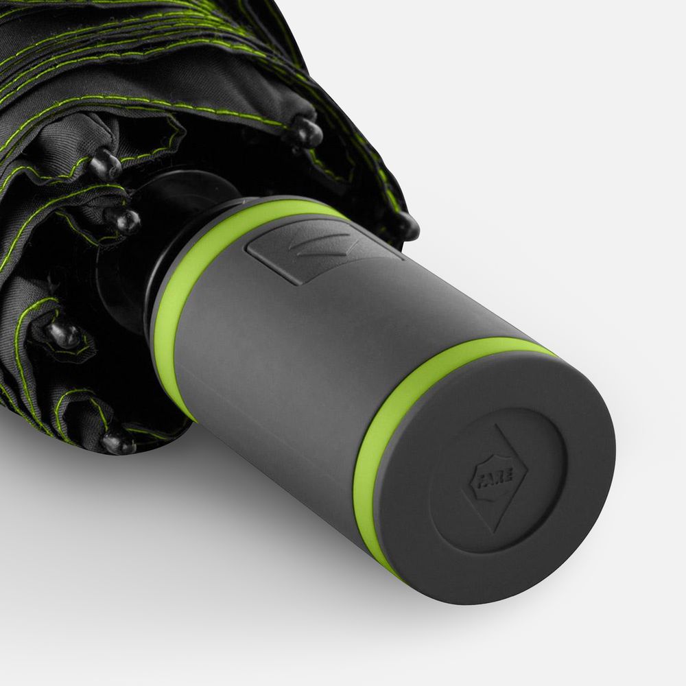 Купол зонта AOC Mini произведен из сертифицированного OEKO-TEX полиэфирного эпонжа из переработанного пластика, окрашенного по технологии waterSAVE. Новый процесс окрашивания — непосредственно в процессе производства материала — снижает потребление электричества, воды и химически активных веществ.