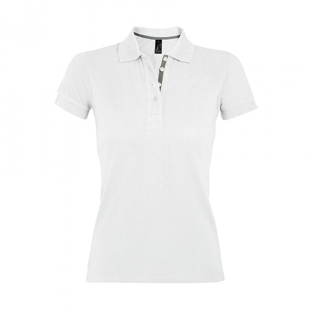 Параметры: Поло "Portland Women", белый, серый_S, 100% х/б, 200г/м2