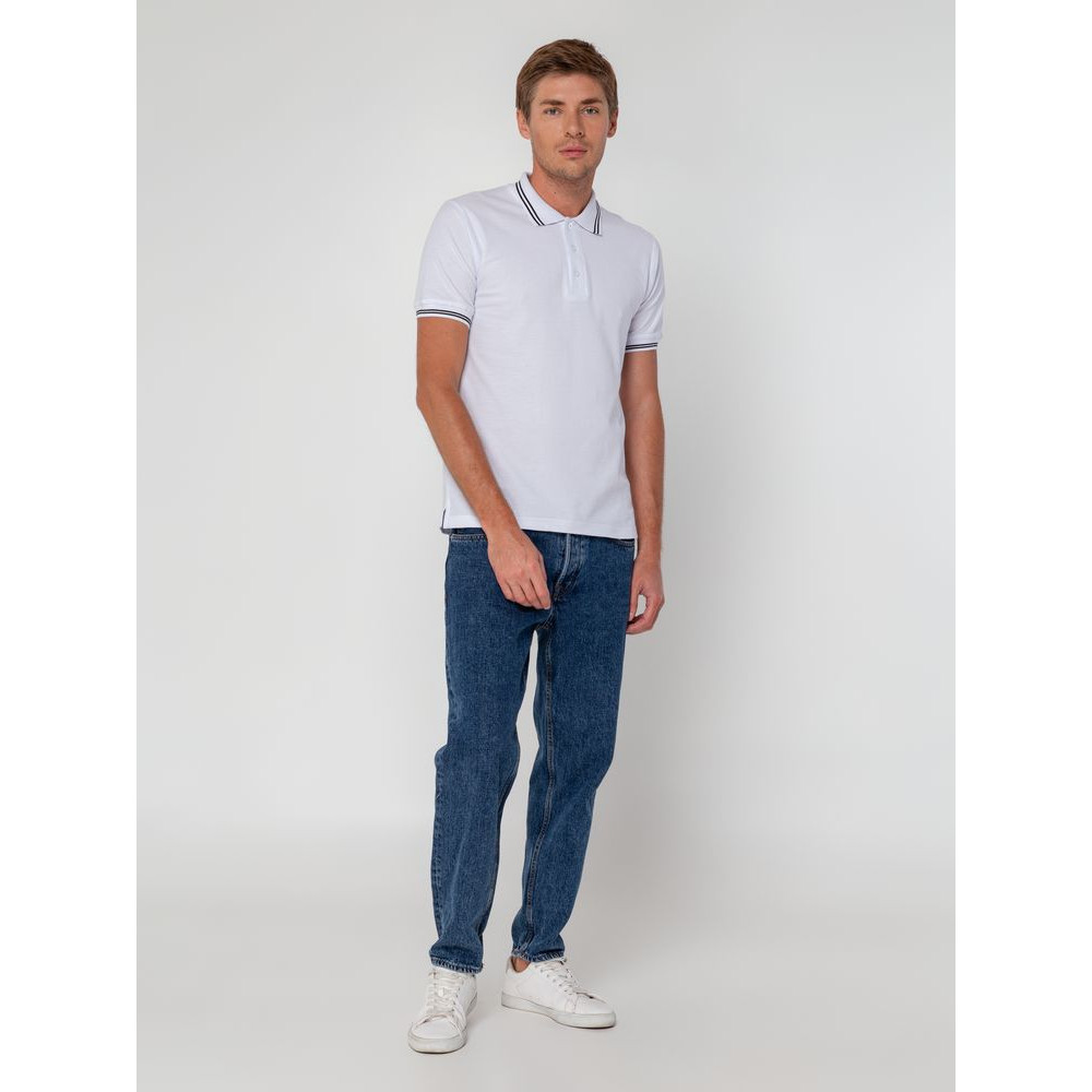 Мужская рубашка поло прямого силуэта с контрастными деталями.