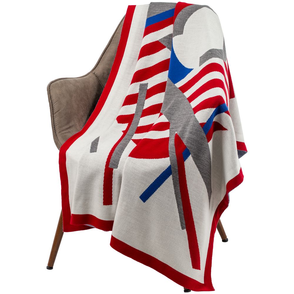 Модель: плед жаккардовой вязки, гладкая поверхность, 4 цвета нитей, рябая изнанка.