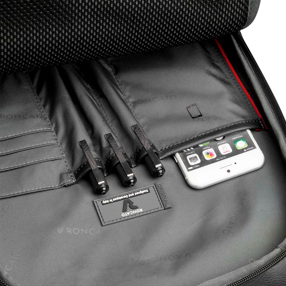 - Отделение-органайзер со слотами для кредиток, карманом для телефона и сетчатым карманом на молнии