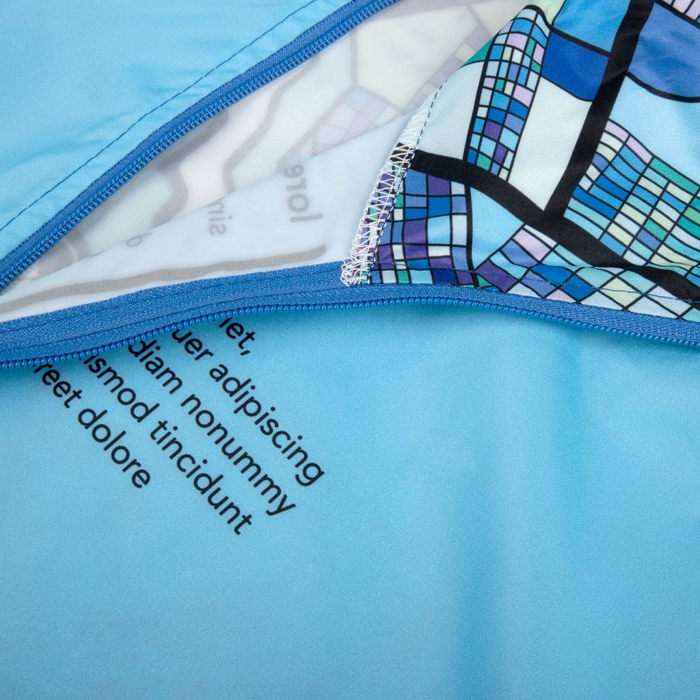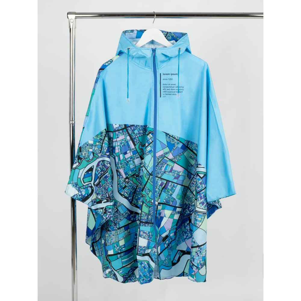 Полноцветная печать методом сублимации с лицевой стороны дождевика и мешка для хранения входит в стоимость изделия.