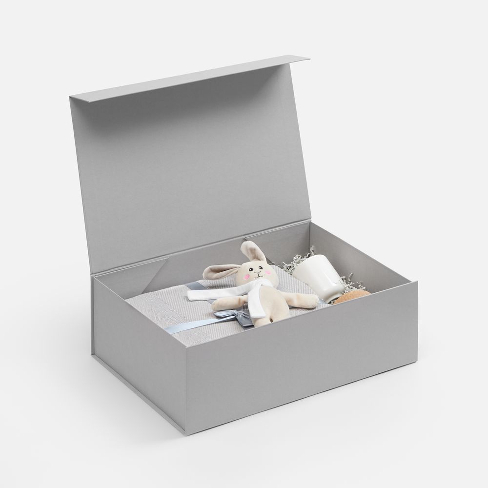 Подарочная коробка RealBig Fold изготовлена из переплетного картона, кашированного дизайнерской бумагой с крышкой на магните. Благодаря самосборной конструкции коробка легко и быстро собирается без дополнительных инструментов. Это идеальное сочетание эстетики и функциональности для упаковки ценных презентов и аксессуаров, где важны и практичность, и декоративность — для самого приятного впечатления от вручения.