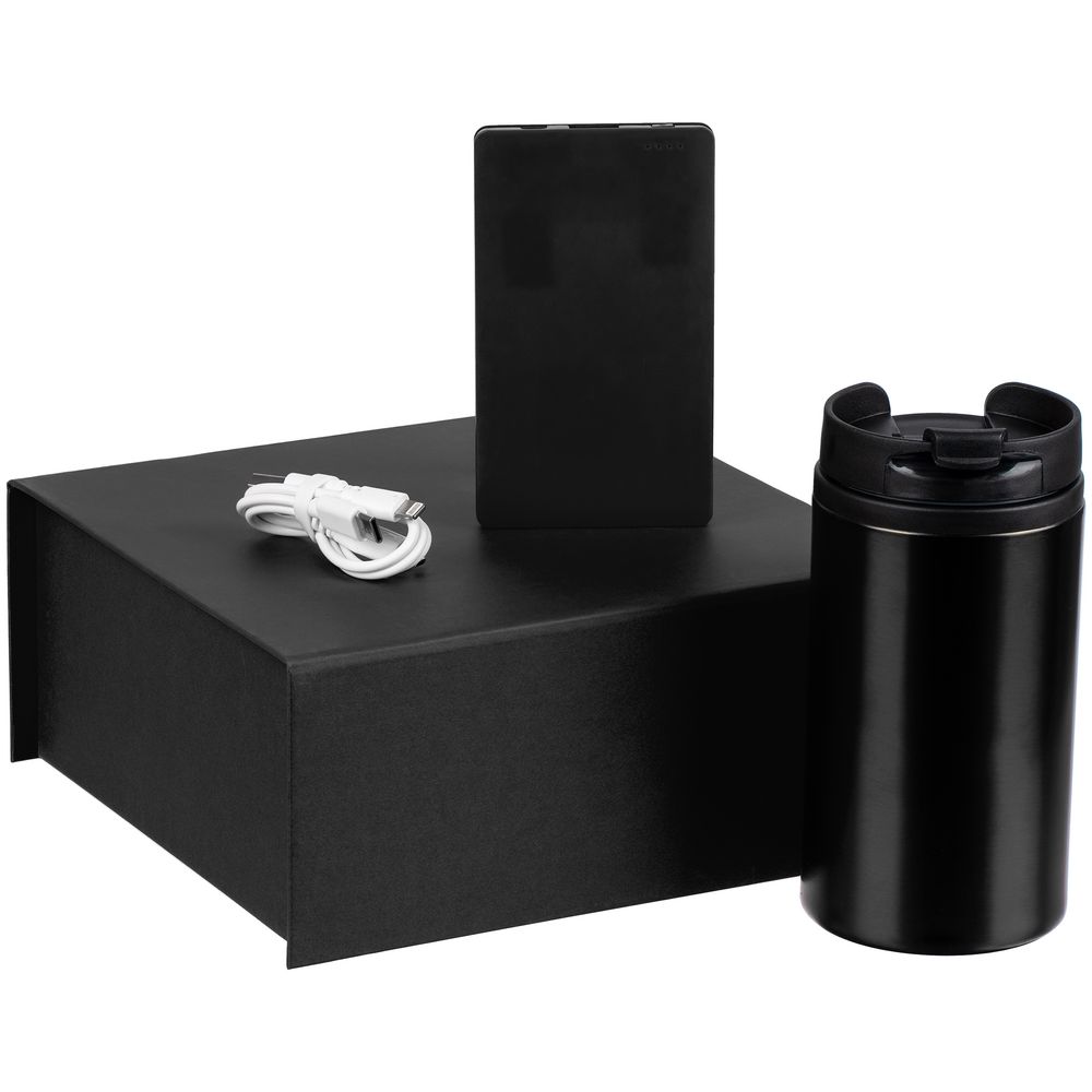 Набор Easy Trick — незаменимый спутник в дороге и офисе, с которым легко восполнить заряд энергии. Плоский аккумулятор легко поместится даже в карман, а компактная термокружка — в любую кофемашину.