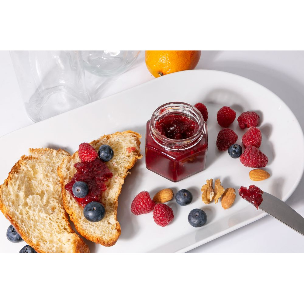Баночка необычного конфитюра с насыщенным вкусом отлично подойдет в качестве подарка, чтобы вовремя подсластить кому-нибудь пилюлю.Состав: малина, сахар, вода, пектин, вино, пряности, лимонная кислота.