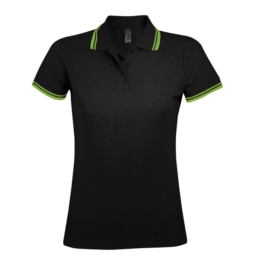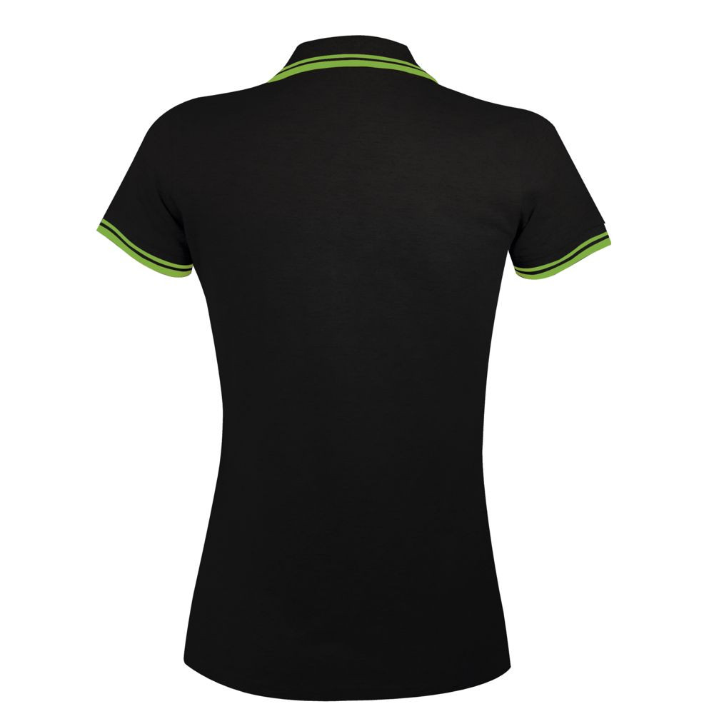 Рубашка поло женская Pasadena Women 200 с контрастной отделкой, черная с зеленым