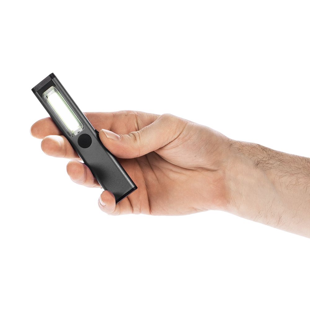 Плавная регулировка яркости осуществляется удержанием центральной кнопки при включенном устройстве — это позволяет точно адаптировать освещение под рабочие условия. Магнит в основании фонарика дает возможность зафиксировать фонарик на металлической поверхности и освободить руки для выполнения задач.