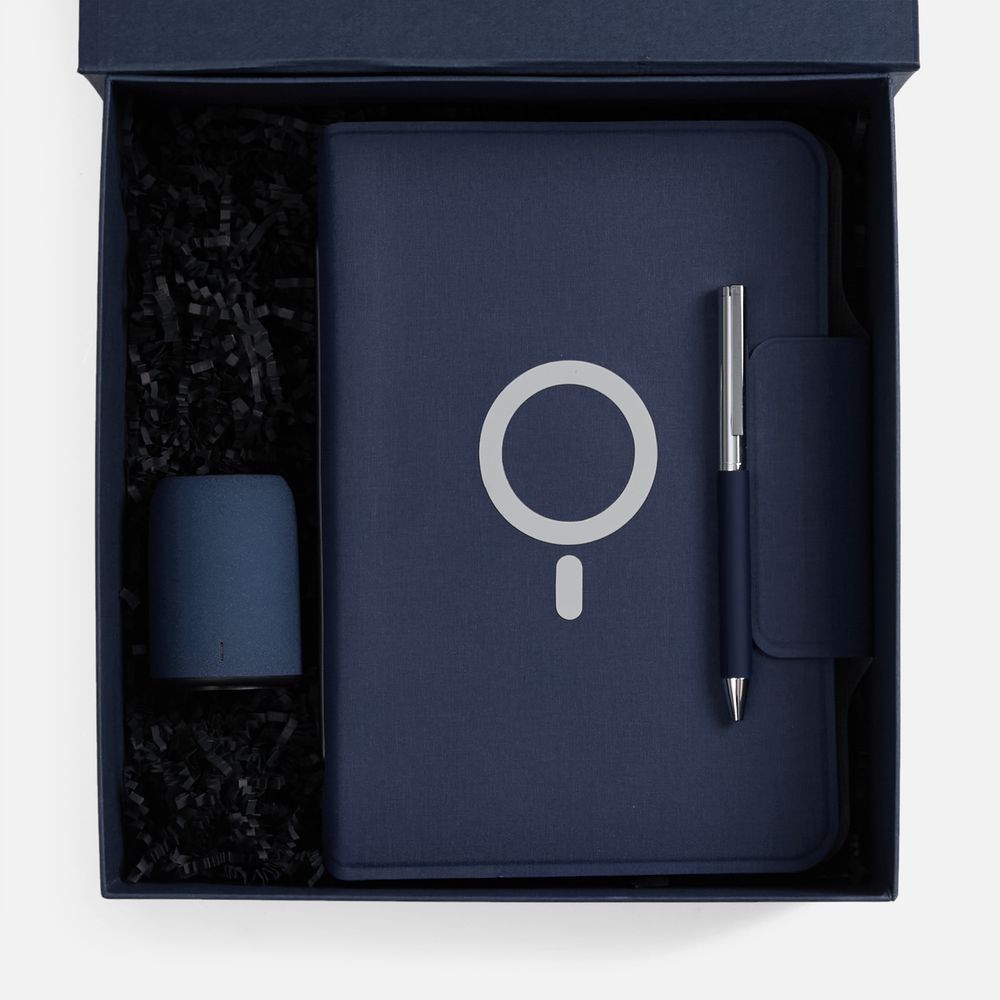 Центральное место в наборе, конечно, занимает органайзер Oiro с блокнотом, подставкой для смартфона и встроенным аккумулятором для беспроводной зарядки — практичное смарт-решение в организации рабочего процесса, где каждая деталь продумана для максимального комфорта и подлинного удовольствия.