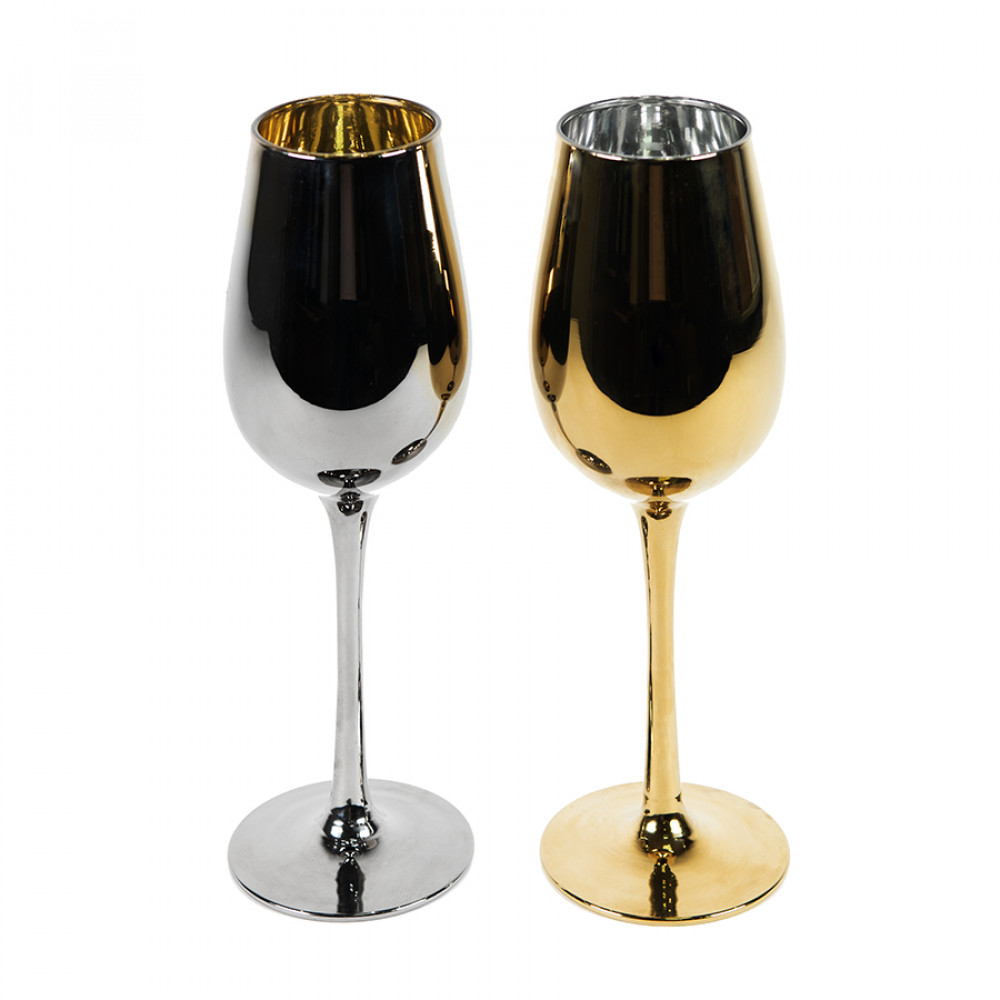 Два бокала серебряного и золотого цвета в одном наборе, как две части единого целого, идеально дополняют друг друга.