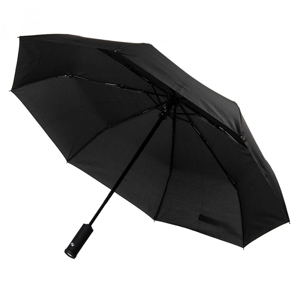 Зонт PRESTON складной с ручкой-фонариком, полуавтомат; черный; D=100 см; 100% полиэстер