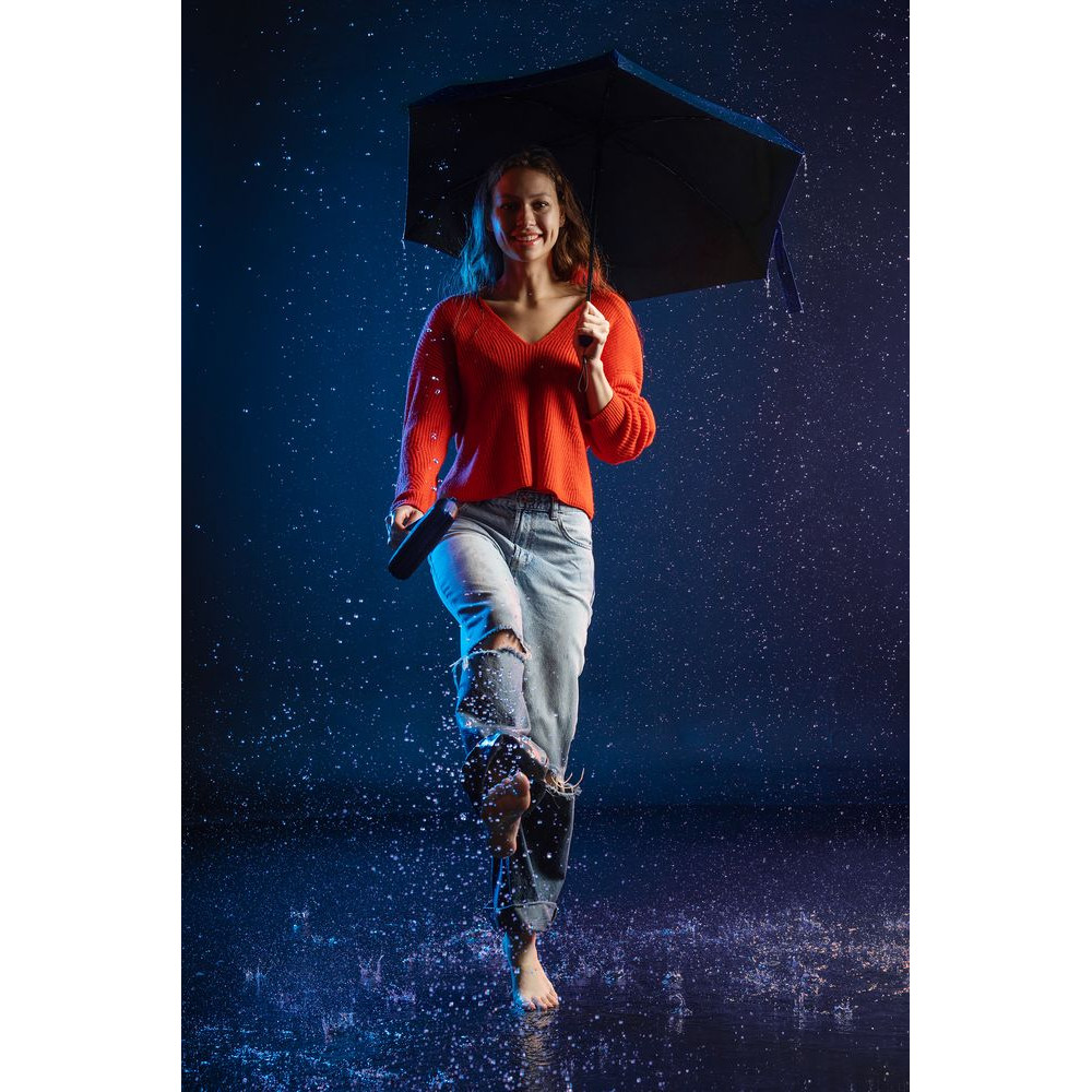 Миниатюрный зонт Color Action укроет от дождя или палящего солнца. Благодаря небольшим размерам и чехлу-кейсу на длинном ремешке его удобно брать с собой.